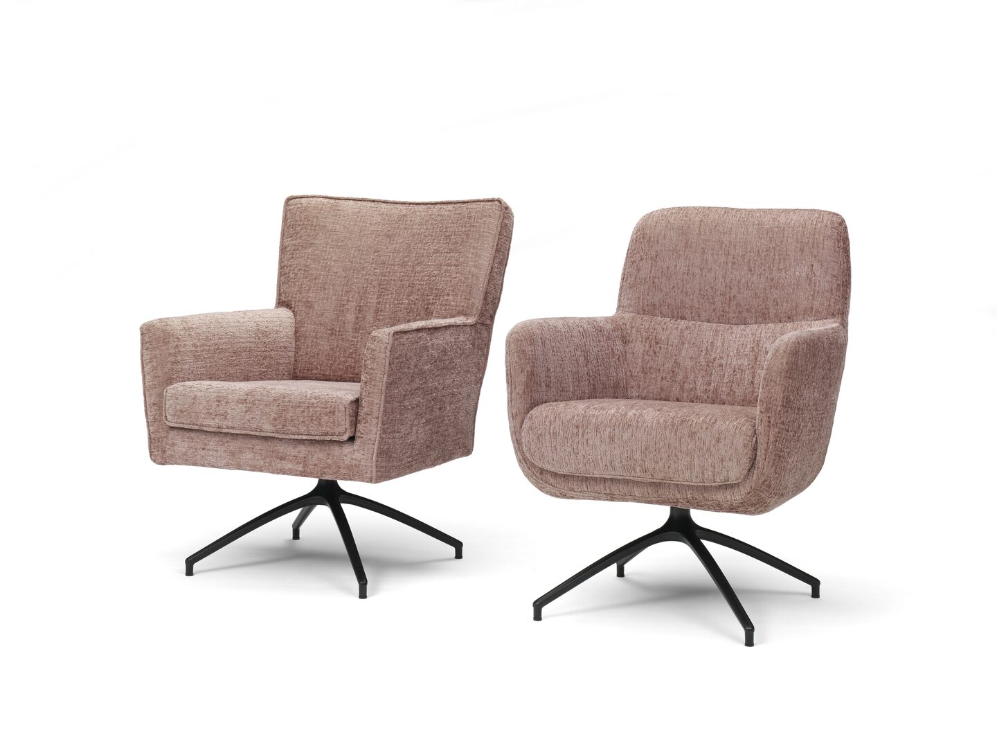 Fauteuil Summer is vergelijkbaar met de Achill maar dan met ronde vormen wat een speels effect creëert, deze fauteuil is te zien op de derde foto.