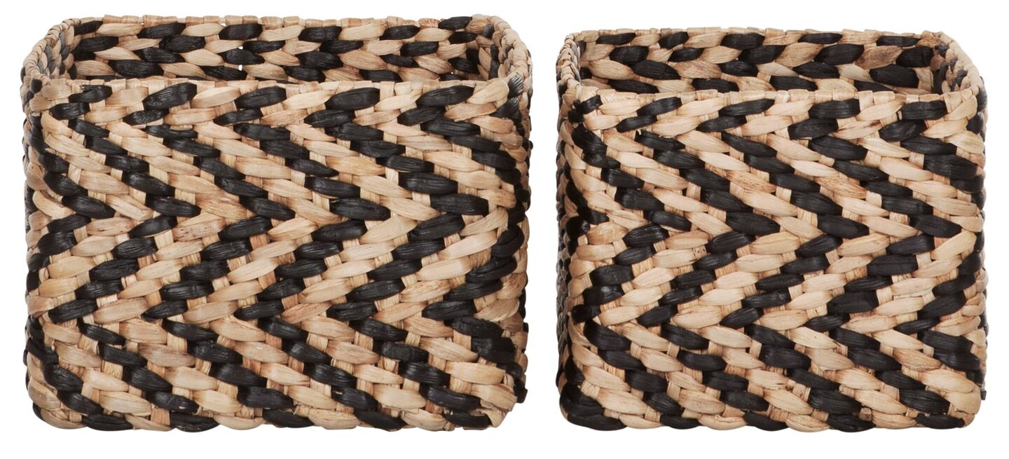 De manden van MUST Living zijn gemaakt van waterhyacint en hebben een afmeting van 21xØ25 cm en 22xØ30 cm.