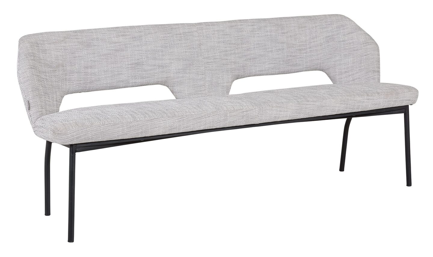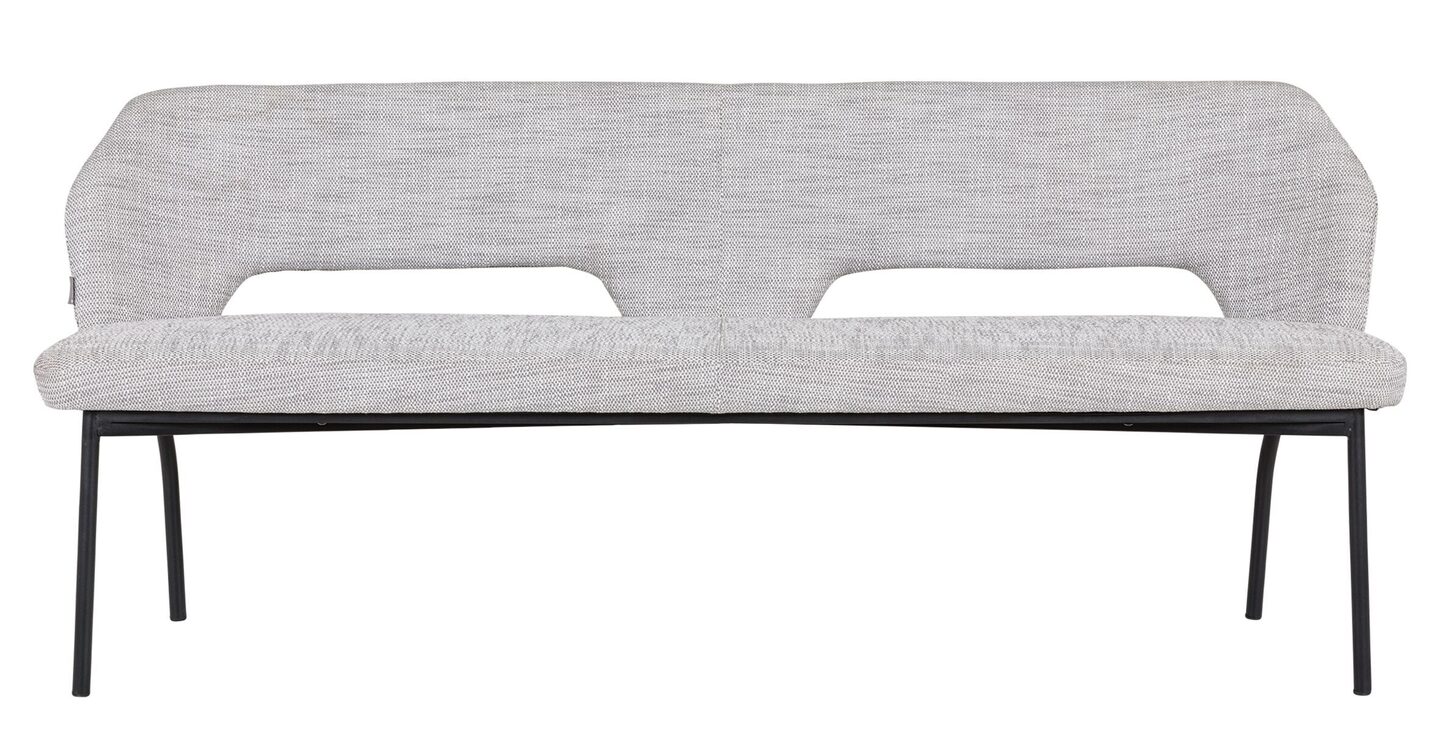Eetbank Bloom van het Nederlandse lifestyle merk MUST Living heeft een afmeting van 86x190x57 cm. De zitting is bekleed met viscose/ polyester stof in een lichtgrijze kleur. De eetbank is afgewerkt met zwarte poten.