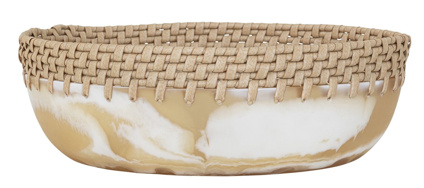 Bowl Da Vinci ROUND,±12xØ35 cm, resin brown/white and synthetic abaca