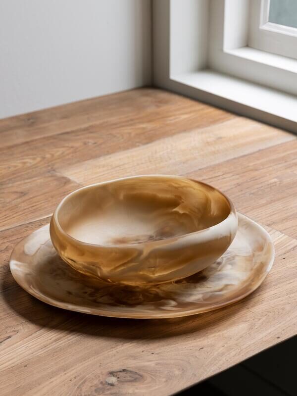 Bowl Rafael Brown/White small,±9xØ25 cm, resin brown/white swirled