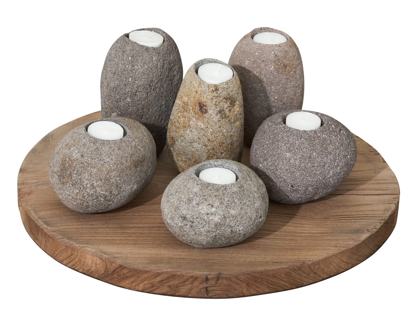 Deze waxinelichtjes van Must Living zijn gemaakt van rivierstenen. Door het stromen van het water krijgen rivierstenen ieder een eigen ronde vorm en formaat. Grotere rivierstenen worden vaak gehalveerd om verwerkt te worden tot waskom. Van de kleinere stenen maken we kandelaren. Verkrijgbaar als 3-delige sets in hoge of lage vorm. Iedere set is uniek in kleur en vorm.