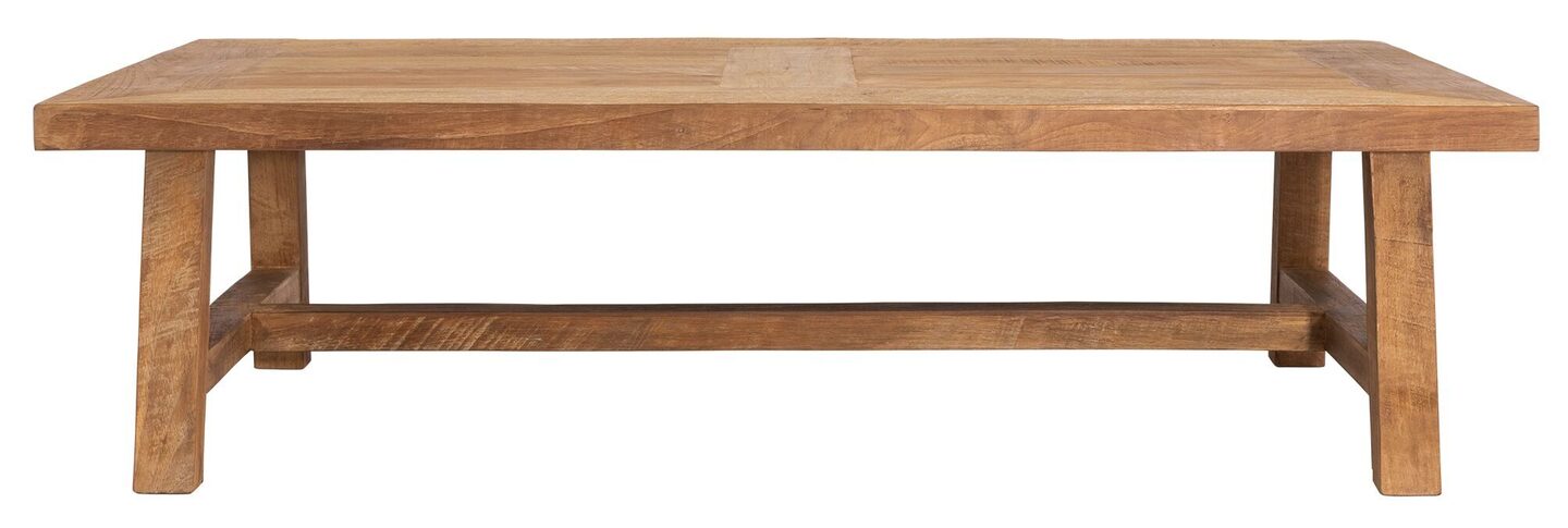 Salontafel Monastery heeft een rechthoekige vorm, waar van de afmetingen zijn 35 x 130 x 70 cm. Het tafelblad is 4 cm dik en heeft verstek gezaagde hoeken. Al in al een mooie natuurlijke toevoeging in je interieur.