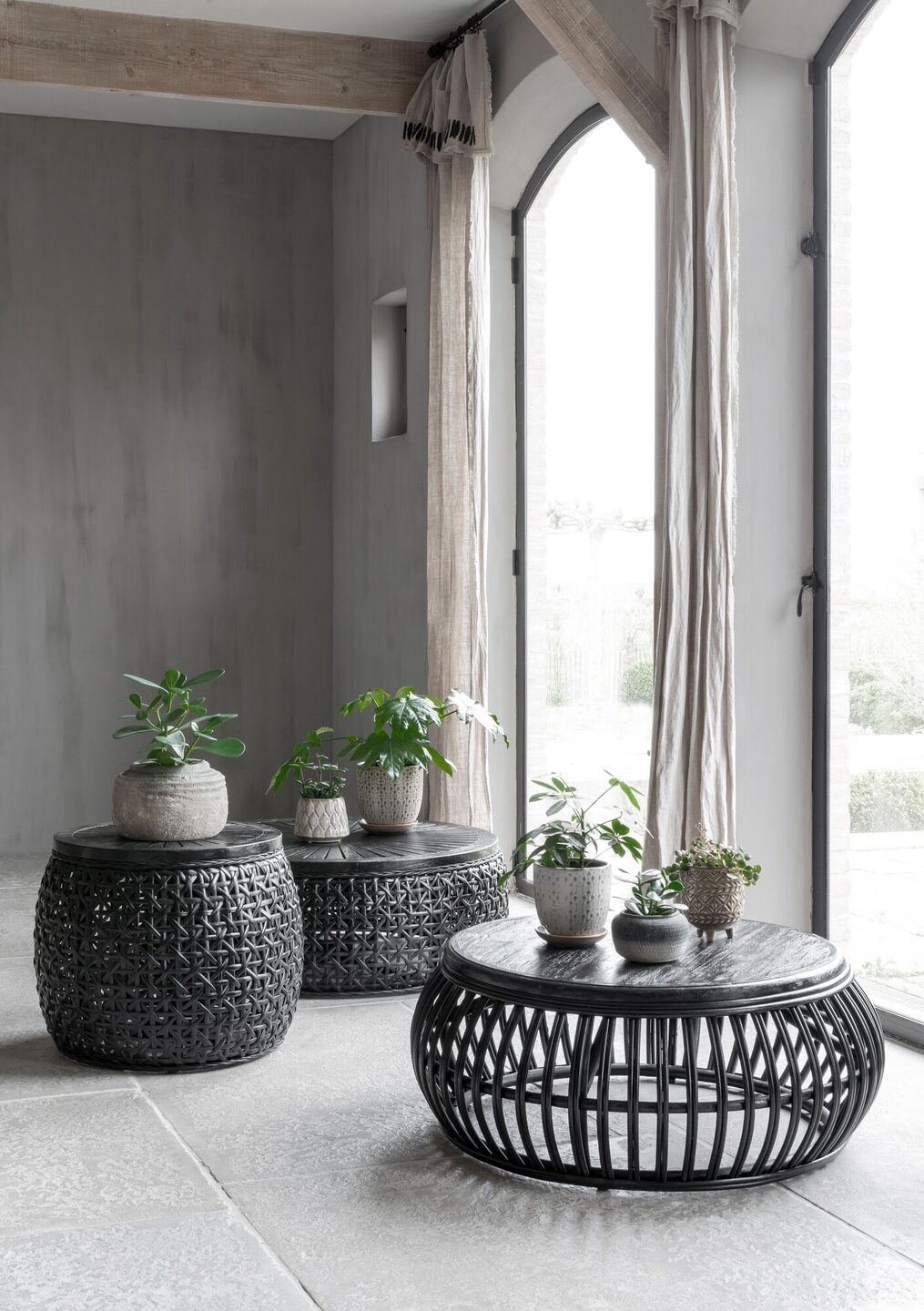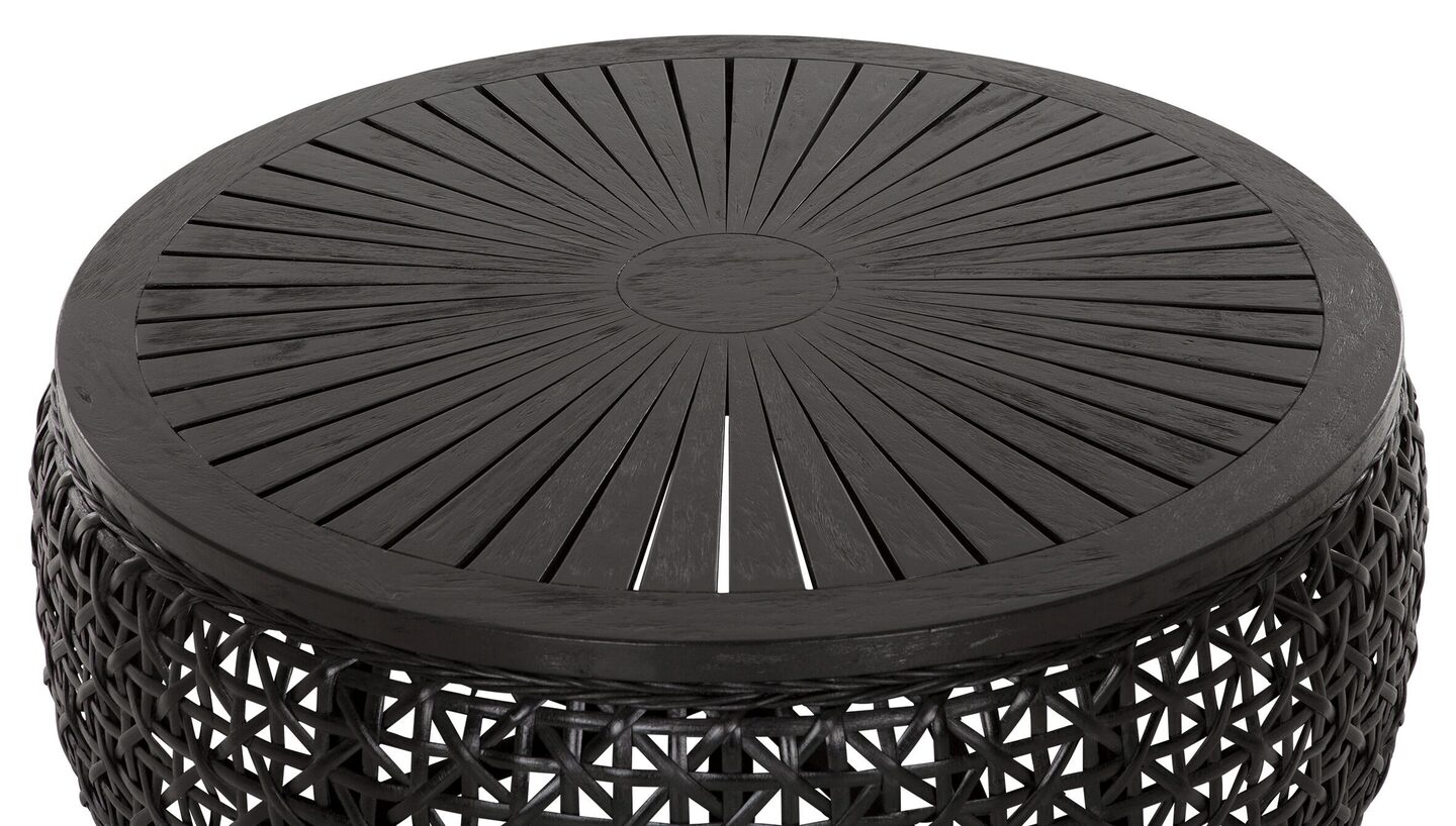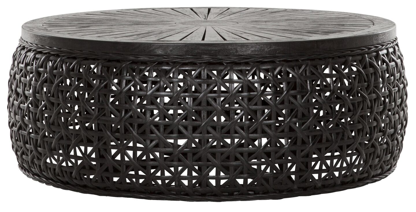 Coffee table Rimini large,35xØ100 cm, Black rattan, wooden top