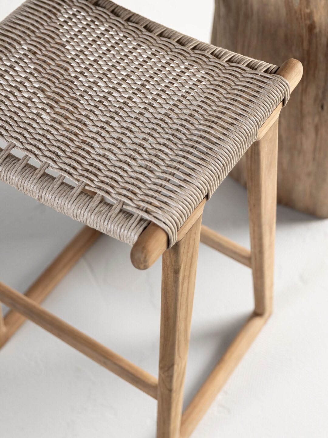 Counter chair Kento,62x41x39 cm, rustic teakwood, seat synthetic rope