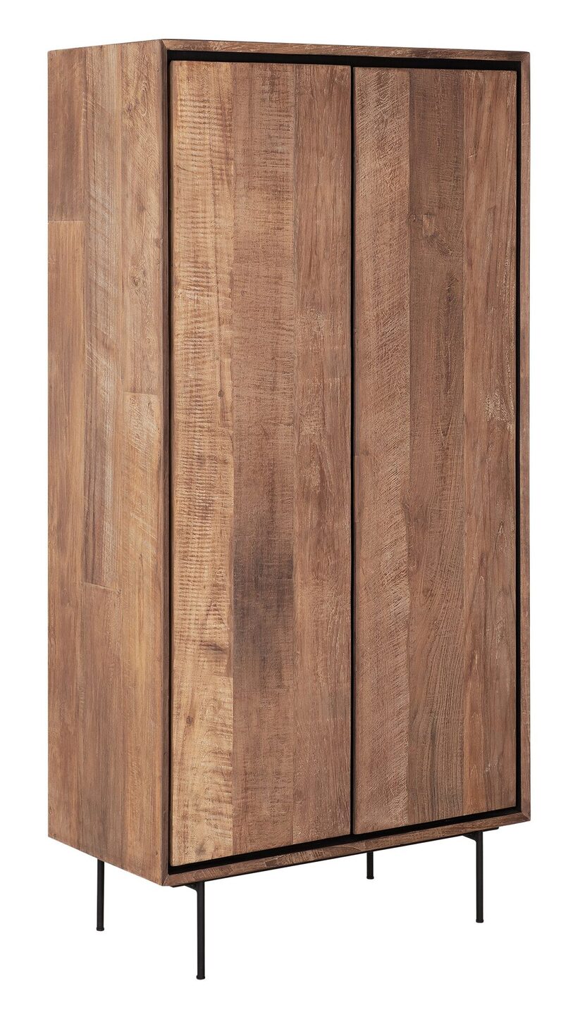 De bergkast Metropole is gemaakt van teakhout. De randen van de kast lopen schuin naar binnen, waardoor er diepte wordt gecreëerd. Samen met de ronde, metalen poten, greeploze lange deuren en donkere binnenkant heeft de bergkast Metropole een robuust, maar gelijktijdig modern uiterlijk. De kast is modern, robuust en tegelijkertijd luchtig.