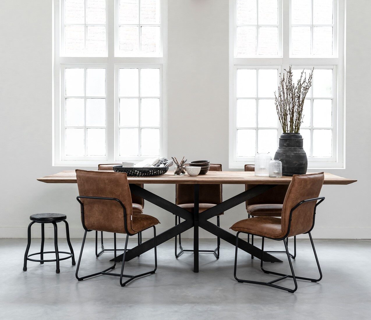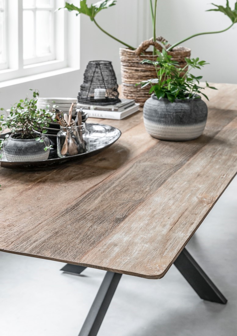 Eettafel Curves is gemaakt van teakhout en is afgewerkt met een metalen frame. De tafel heeft een afmeting van 78x260x100 cm.
