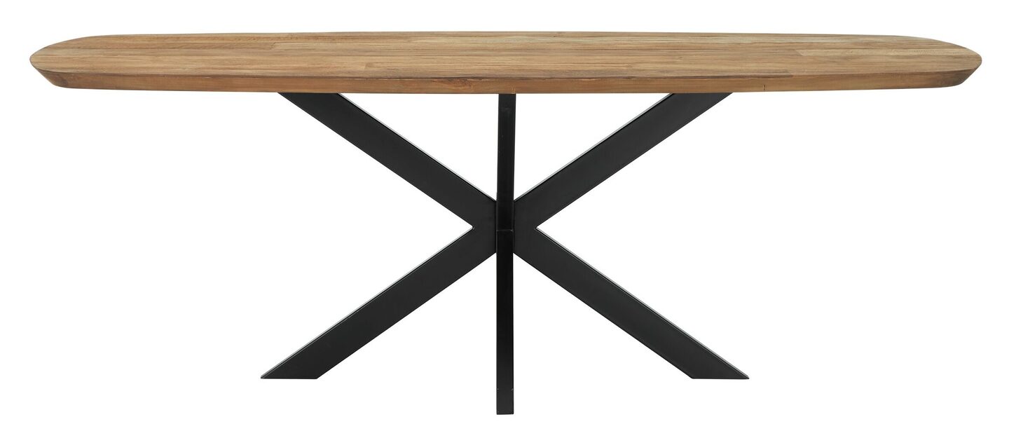 Stel je voor: een eettafel die niet alleen het hart van je woning vormt, maar ook direct een verhaal vertelt. De Evo eettafel van DTP Home brengt met zijn Deens ovale vorm en het warme, karaktervolle gerecyclede teakhout een sfeervolle balans in je interieur. Het ontwerp combineert de verfijnde retro-invloeden van de bekende Soho-collectie met een eigentijdse, zachte vormentaal. Dankzij de robuuste zwarte metalen poten krijgt het geheel een stoer accent, waardoor deze tafel moeiteloos past in zowel een industrieel als een modern interieur.