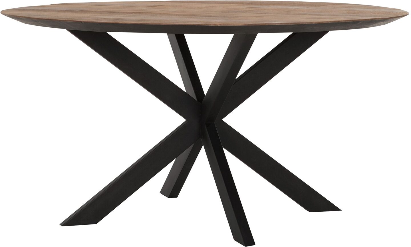 TI 601105 Timeless Collection Teakwood 78xØ150 cm Eettafel Shape rond van de Timeless Collection is gemaakt van gerecycled teakhout. Het tafelblad loopt af richting de poten en heeft zwarte randen. De tafel is in twee diameters beschikbaar.