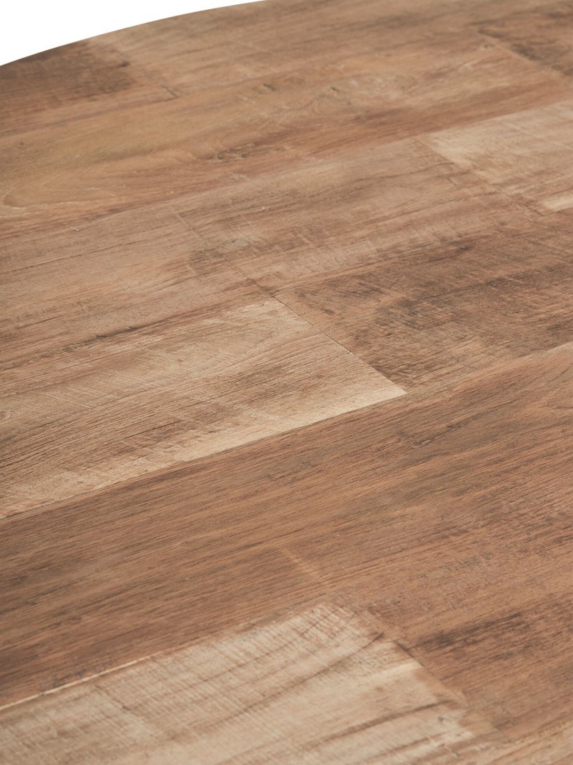 Het schuin afgewerkte tafelblad van countertafel Soho is gemaakt van gerecycled teak. Dit stoere blad zorgt er, in combinatie met het moderne zwartstalen onderstel, voor dat de eettafel een vriendelijke en stoere uitstraling heeft. Eettafel Soho heeft een afmeting 150 cm rond en is ook leverbaar in 130 cm. Combineer hem met de nieuwe eetkamerstoelen Zola van Must Living. Naarst de teak uitvoering is de eettafel ook leverbaar in mortex.