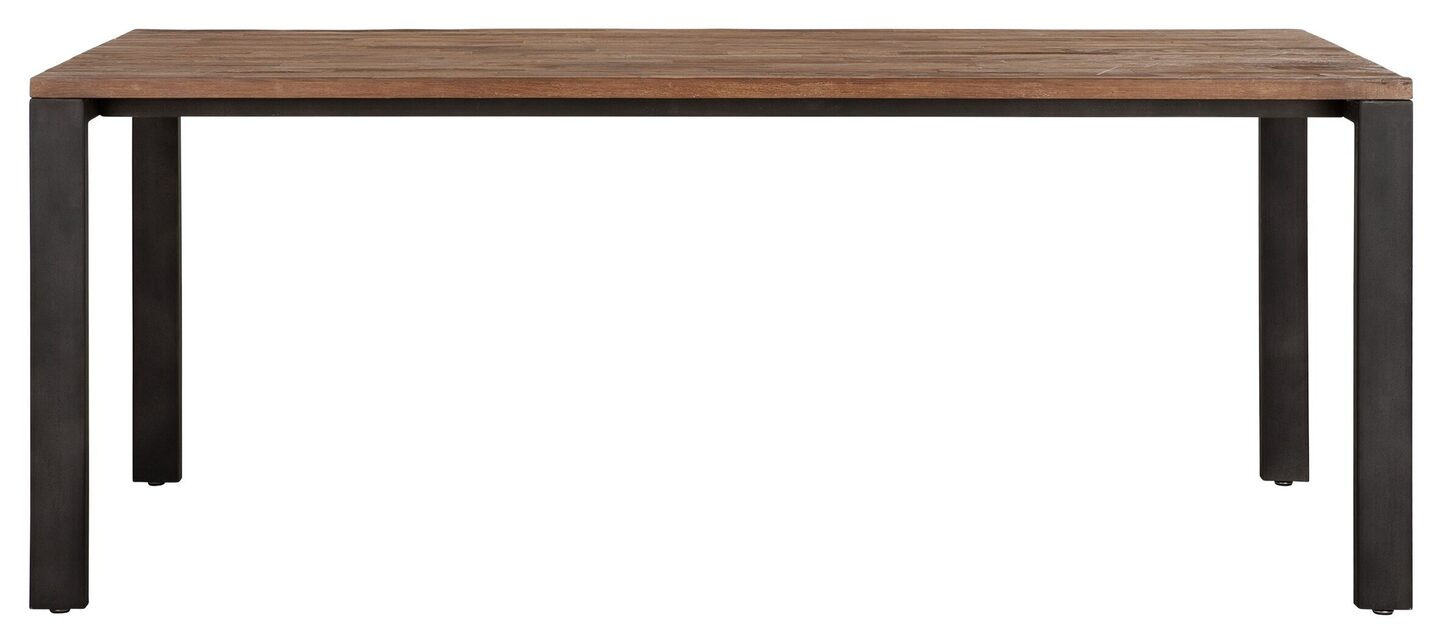 Eettafel Tracks is gemaakt van teakhout en is afgewerkt met een metalen frame. De tafel heeft een afmeting van 78x200x90 cm en het blad heeft een dikte van 3 cm.