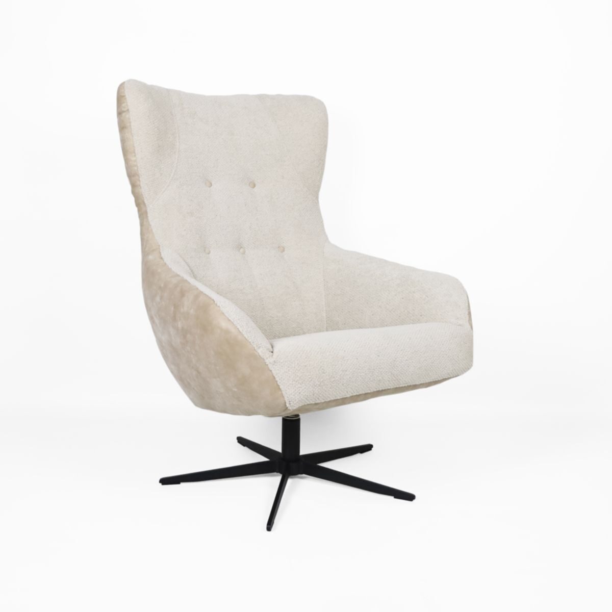 Prijs is vanaf prijs. Zoals afgebeeld in de combinatie stof en leder is de fauteuil €1075,-