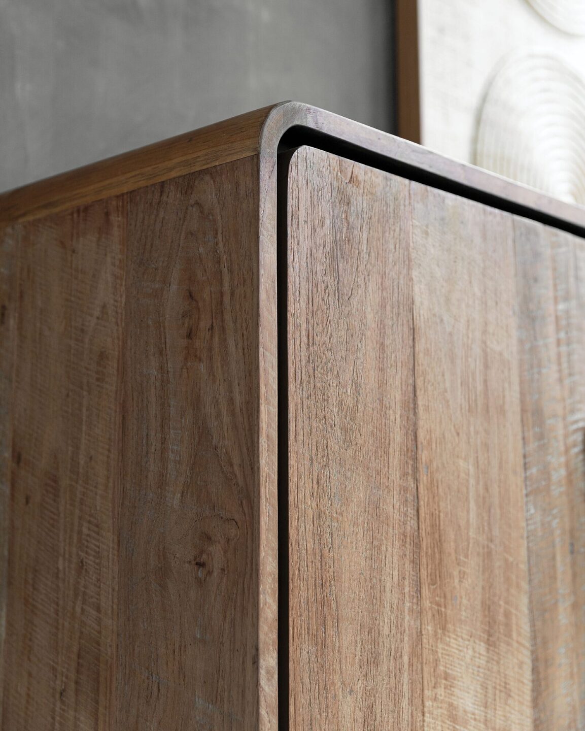 Na het succes van de Soho Collection komt Dtp-Home met een aanvullende collectie in deze stijl, namelijk de Evo Collectie! De handvatten en poten zijn hetzelfde als de Soho Collectie waardoor ze gemakkelijk te combineren zijn. Ronde rondingen zichtbaar aan de voorzijde, inclusief de deuren, maken de Evo ‘nieuwe retro’. De meubels zijn gemaakt van gerecycled, duurzaam teakhout. Achter de deuren is genoeg bergruimte door de plank.