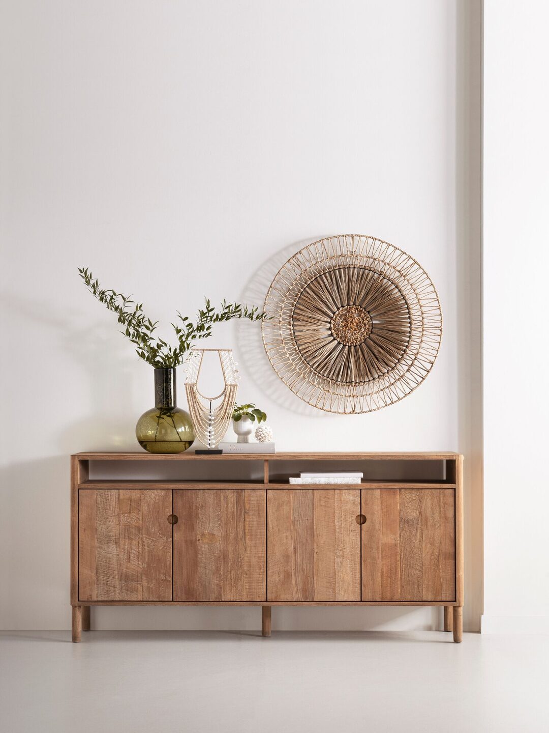 Dresser Apollo, 4 doors, 2 open racks,90x190x40 cm, recycled teakwood