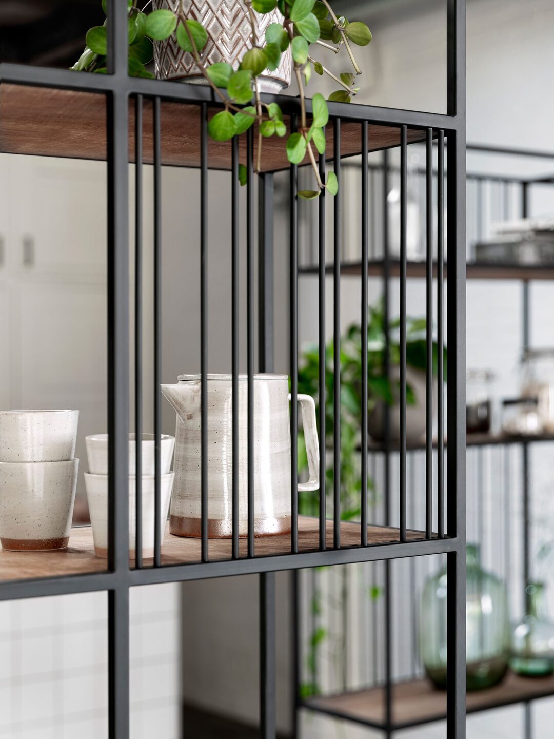 De collectie combineert luchtig metalen spijlenwerk met gerecycled teakhout. Hierdoor creëer je een mooie en unieke kast. De basis van de Barra collectie zijn de vierkanten buizen waar teakhouten planken zijn ingelegd. De vlakverdeling ontstaat doordat ronde spijlen op ongelijke afstand van elkaar zijn geplaatst.