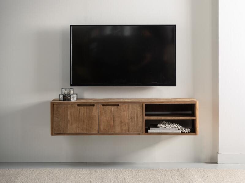 Hanging TV stand Bliss No.2 small, 2 doors, 2 open racks,30x130x35 cm | TEAKWOOD top