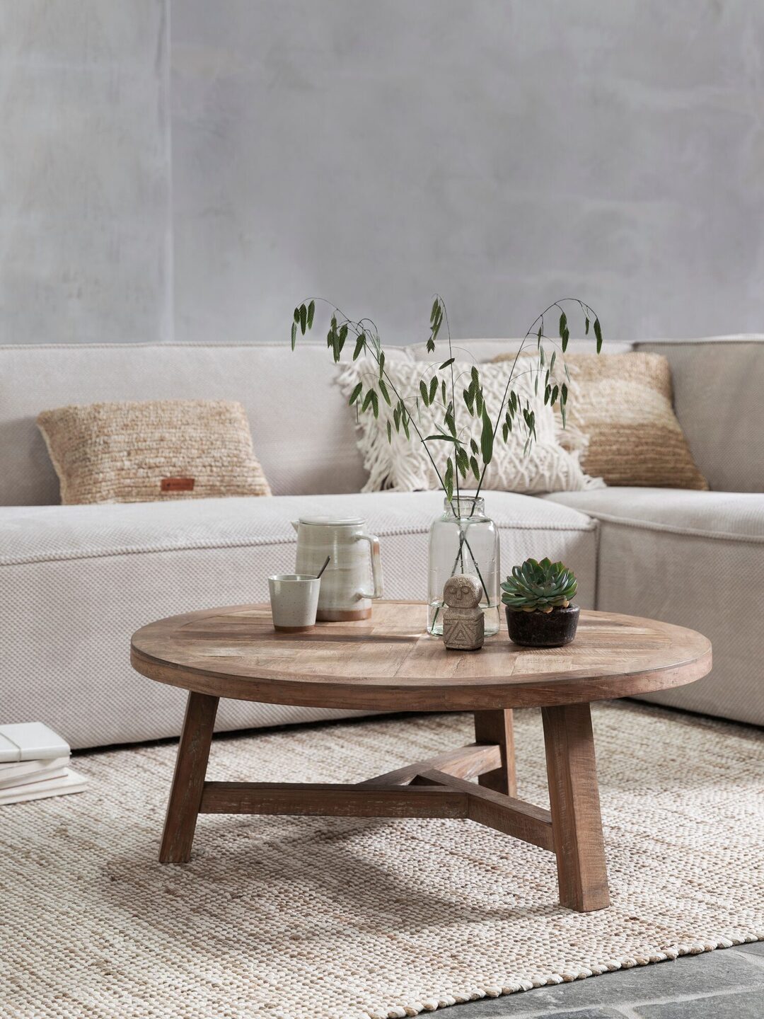 Salontafel Monastery heeft een ronde vorm, de afmetingen van de salontafel zijn, 35 x Ø 90 cm. Het warme teakhouten tafelblad is 3,5 cm dik. Al in al een mooie natuurlijke toevoeging in je interieur.