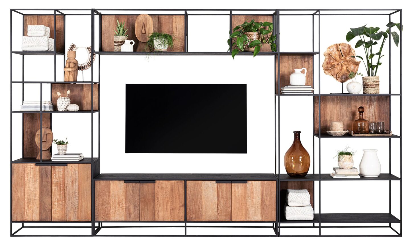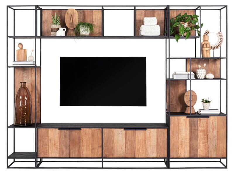 Tv-meubel-tv wandelement met deuren Cosmo is zeker één van DTP Home’s mooiste meubels, zeker wanneer je deze combineert met 1 of meerdere meubels uit de TV wandelement serie van Cosmo. Het tv-meubel is gemaakt van gerecycled teakhout en wordt afgewerkt met zwarte details. Het robuuste meubel beschikt over 4 deuren en heeft een afmeting van 56 x 180 x 40 cm. Dit meubel is ook verkrijgbaar als een tv meubel met 4 laden en open vakken.