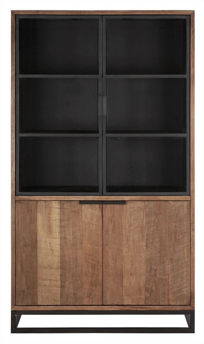 De Cosmo vitrinekast heeft een afmeting van 215x120x45 cm en heeft vier deuren, en is ook verkrijgbaar in een groteremaat. De grote glazen deuren en donkere achtergrond zorgen voor een prachtig contrast met wat je kiest te presenteren in deze vitrinekast. De houten deuren onder zorgen dat je nog steeds wat plek hebt voor bergruimte.
