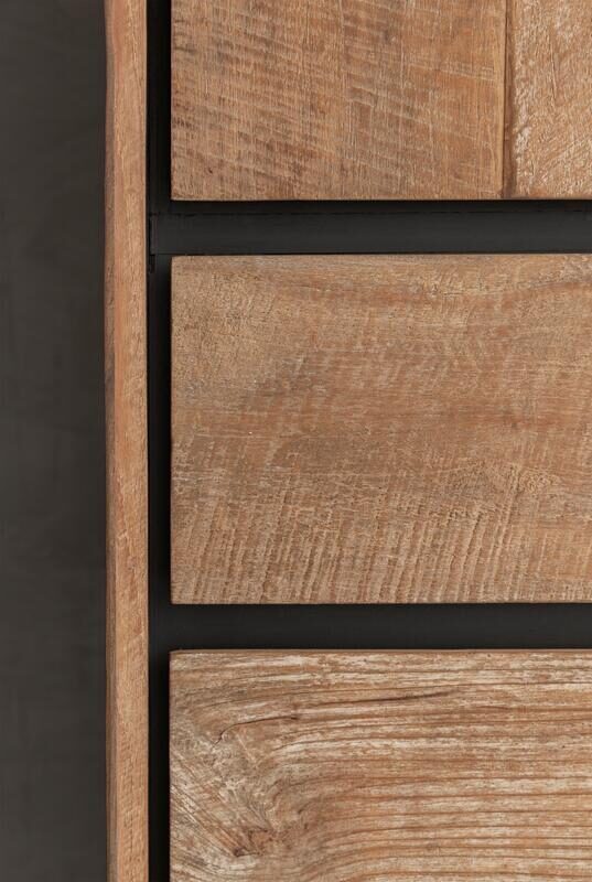 Bergkast Metropole van DTP Home biedt flink wat opbergruimte. Deze karaktervolle wandkast heeft drie kastdeurtjes en drie lades Zo is er voldoende ruimte om spullen die je niet in het zicht wilt, op te bergen. De Metropole is gemaakt van gerecycled teakhout dat met de hand is bewerkt. Hierdoor zijn de scheurtjes, lijnen en onregelmatigheden op de boekenkast nog zichtbaar. Hierdoor krijgt de kast een stoere uitstraling.