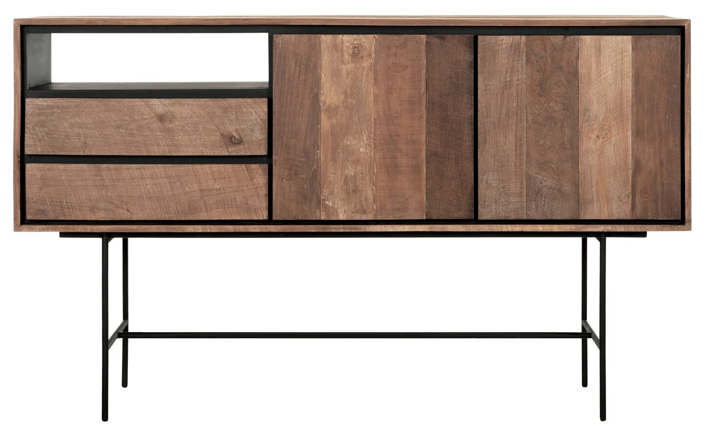 Metropole dressoir van DTP Home biedt voldoende opbergruimte. Dit sierlijke dressoir heeft namelijk twee kastdeurtjes, twee lades en een ruim open vak. Zo is er voldoende ruimte om spullen uit het zicht op te bergen. Het Metropole dressoir is gemaakt van gerecycled teakhout dat met de hand is bewerkt. Hierdoor zijn de scheurtjes, lijnen en onregelmatigheden op de opbergkast nog zichtbaar. Door de combinatie van het robuuste teakhout en de metalen accenten krijgt de kast een mooie, robuuste uitstraling.