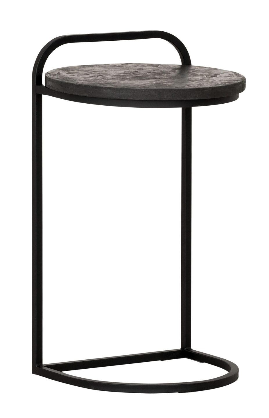 Laptop tafel Soho heeft een zwart mortex bovenblad. De laptop tafel heeft een ronde vorm. De afmetingen zijn 60x35x35 cm. Laptoptafel Soho is ook leverbaar in gerecycled teakhout.