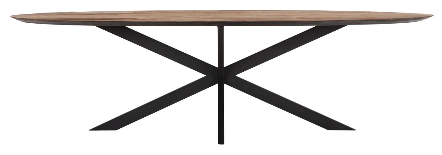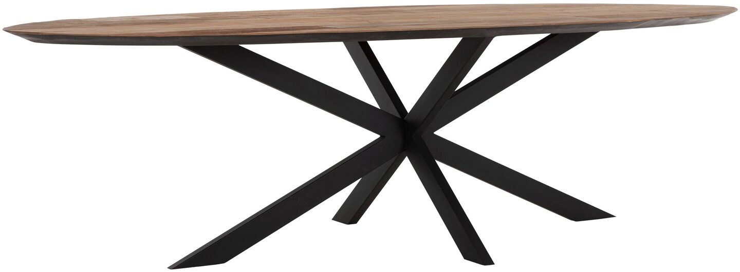 TI 601384 Timesless Collection Teakhout 78x280x120cm Eettafel Shape ovaal van de Timeless Collection is gemaakt van gerecycled teakhout met daaronder een zwart ijzeren knock down frame. Het tafelblad heeft zwarte randen die rond aflopen richting de poten. Eettafel Shape ovaal is beschikbaar in meerdere afmetingen.