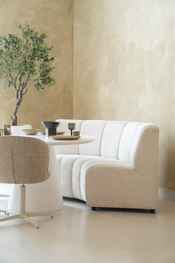 Heb je een ronde of ovale eettafel? Dan is eetkamerbank Esther precies wat je zoekt. Esther stel je namelijk samen in jouw ideale rechte of ronde opstelling. Met haar tot aan de grond doorgestoffeerde design en subtiele sierstiksels op de rugleuning en zitting kies je voor een luxe uitstraling en urenlang comfortabel tafelen.