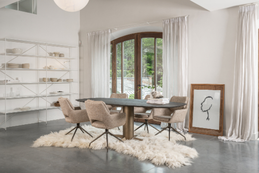 De eetkamerstoelen zijn leverbaar in diverse stoffen. De onderstellen van de eetkamerstoelen zijn leverbaar in 3 kleuren, namelijk zwart, beige en bruin. Je hebt de keuze uit verschillende soorten onderstellen waarbij je ook de optie hebt voor een vast of draaibaar onderstel.