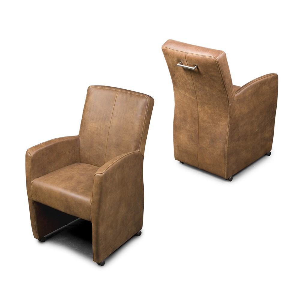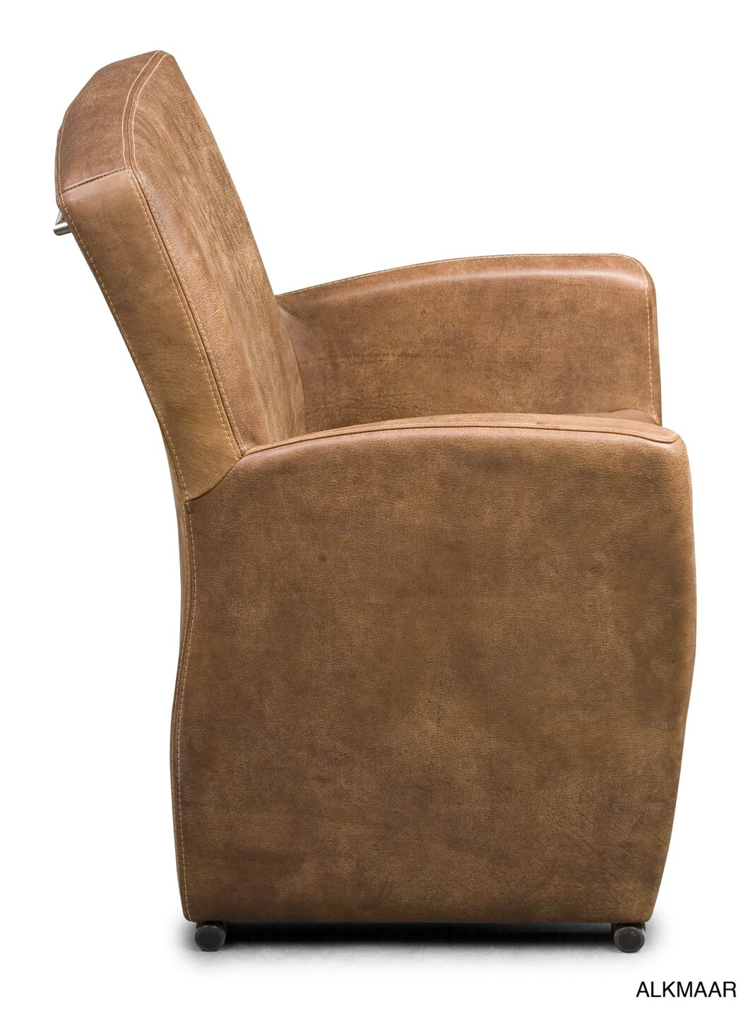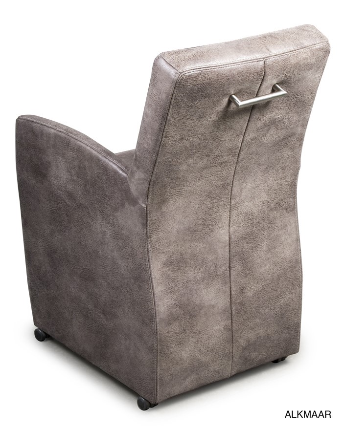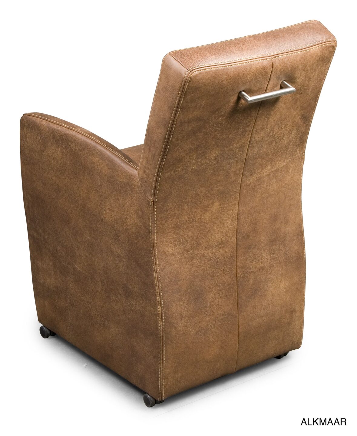 De eetkamerstoel Alkmaar is van absolute topkwaliteit. Nederlands vakmanschap van het merk Haveco! Deze stoel is leverbaar in verschillende soorten en kleuren leder en stof. Daarnaast heb je de keuze uit verschillende stiksels, de Alkmaar stoel is eigenlijk dezelfde stoel als de stoelen Almere en Amersfoort. Het verschil is enkel het gebruik van andere stiknaden. De stoel Alkmaar is ook verkrijgbaar met kleine houten pootjes in plaats van wielen. Op de achterzijde van de stoel zit een RVS greep, maar kan, op aanvraag, ook zonder deze greep worden geleverd. Deze eetkamerstoel is ook mogelijk zonder arm.