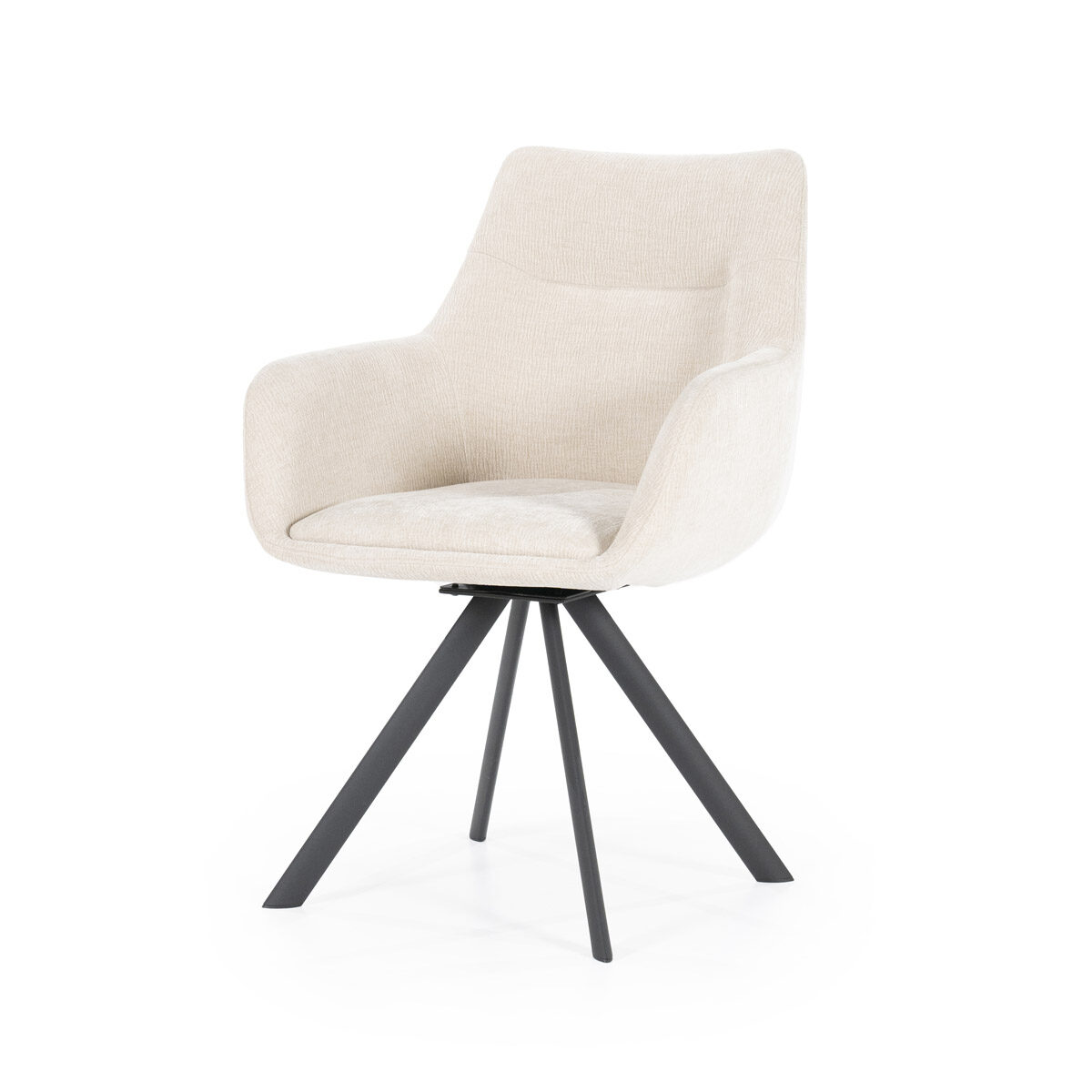 Eetkamerstoel Bliss is verkrijgbaar in 2 varianten (met of zonder armleuning) en in de kleuren beige, mosterd en taupe.