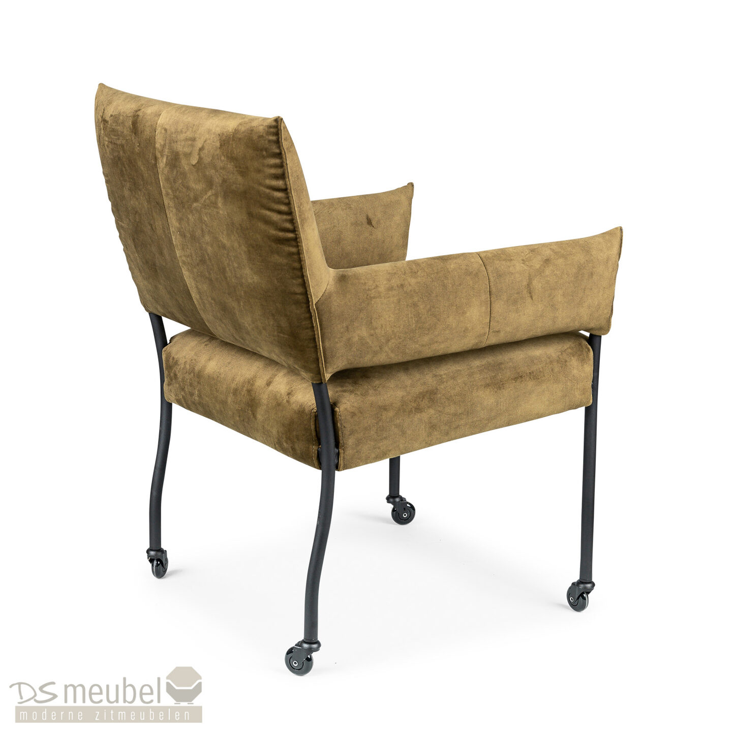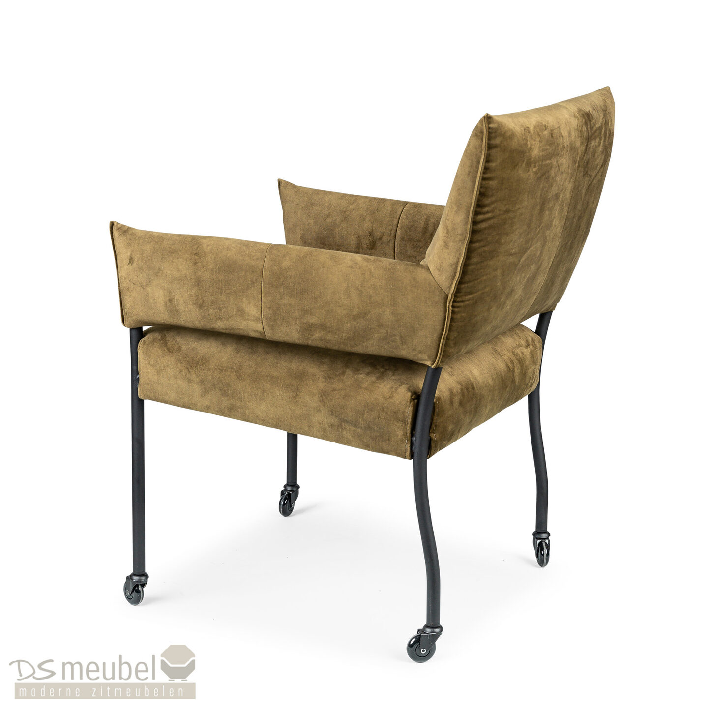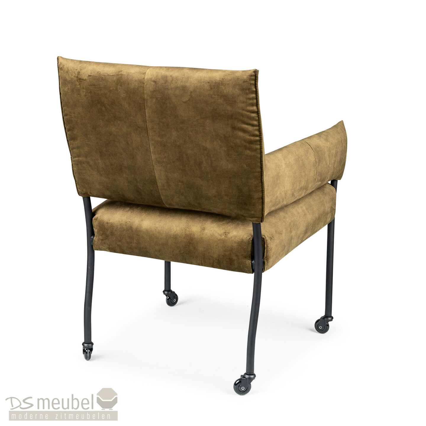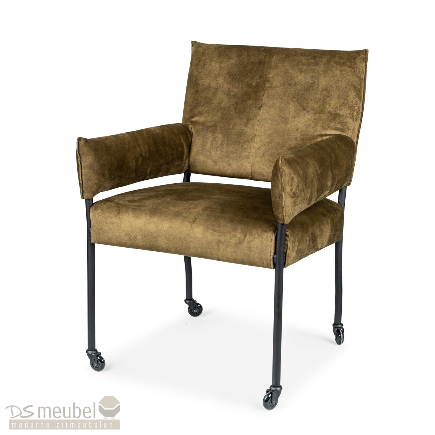 De schitterende armstoel Imke van het merk Chill line is een robuuste maar ook praktische eetkamerfauteuil met een geweldig zitcomfort, zoals we van de eetkamerstoelen uit de Chill line gewend zijn.. De de open zijkanten geeft deze eetkamerstoel een moderne uitstraling en is nog eens praktisch met schoon houden van de stoel. De poten zijn zwart gepoedercoat en zijn voorzien van zwarte skatewielen. Verkrijgbaar in vele kleuren en soorten stof en leder. Zoals afgebeeld: Armstoel in Chill Line leder met zwarte gepoedercoate metalen poten en zwarte wieltjes. Afmeting: (hxbxd) 90x60x68 cm. De eetkamerstoel Imke is ook leverbaar in een XL uitvoering, waarbij de stoel 5 cm breder is. De zitbreedte is daardoor 50 cm ipv 45 cm.