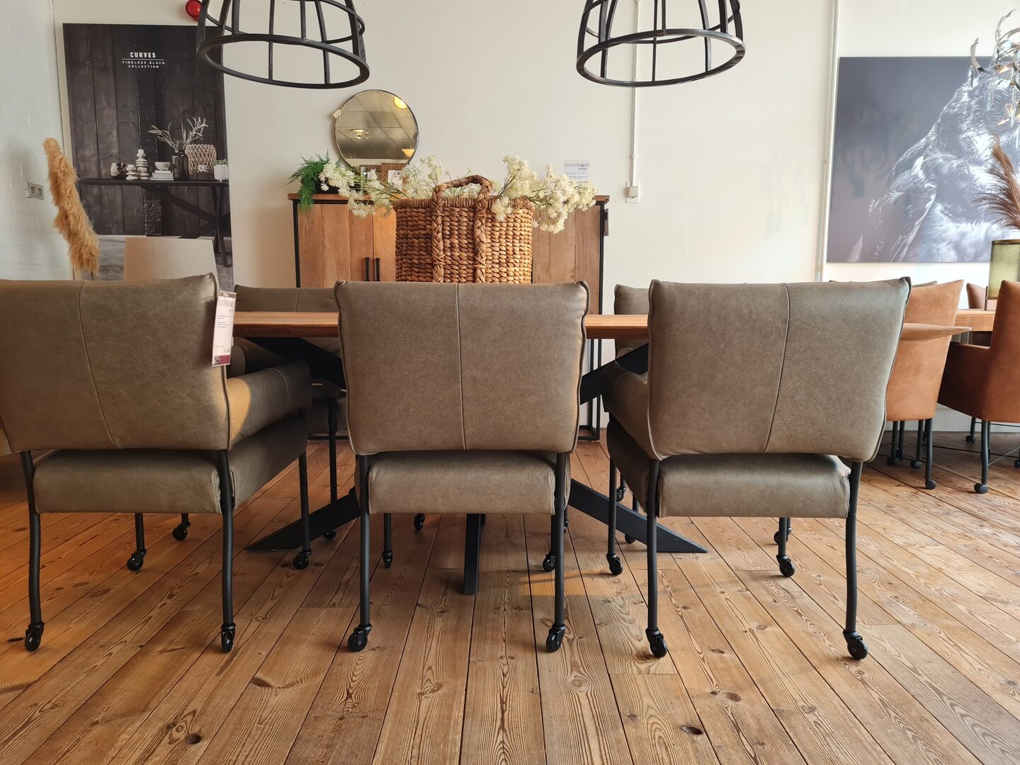 De Chill-Line stoel Imke is een moderne eetkamerstoel met open armleuningen die zorgen voor een luchtige uitstraling én comfortabele ondersteuning. Dankzij het nosag-veersysteem en koudschuim/polyether vulling biedt Imke langdurig zitcomfort, ideaal voor een avond tafelen. U kiest uit een brede collectie luxe stoffen en leersoorten en kunt de metalen poot optioneel voorzien van zwarte skatewieltjes voor extra gebruiksgemak. Voor wie meer ruimte zoekt, is er ook een Large-uitvoering die 5 cm breder is. Ook is er een optie zonder armleuning.