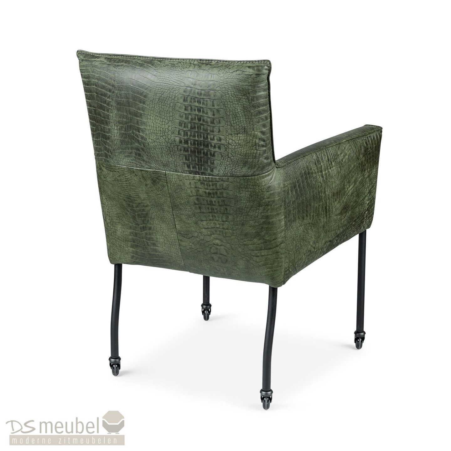 De stoel Kelvin is een stoere, robuuste eetkamerstoel, die zowel met als zonder armleuning gefabriceerd kan worden. Er is de mogelijkheid uit vele ledersoorten en kleuren, maar voor een hippe look kan er ook een keuze gemaakt worden uit verschillende trendy stoffen. De poot is te verkrijgen met en zonder skate wiel en in de kleur zwart.