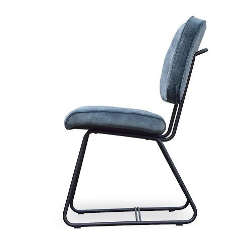 Comfortabele eetkamerstoel NICO. Stoel Nico heeft een zwart metalen frame met handvat in de rugleuning. Verkrijgbaar in heel veel verschillende stoffen. Op de foto in de veloursstof Adore.