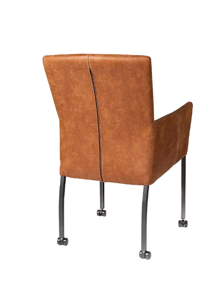 Eetkamerstoel Oscar is goed zittende, kwalitatieve eetkamerstoel op parketwielen. De stoel met armleuningen is leverbaar in veel kleuren stof en leer. Ook leverbaar zonder armleuning.