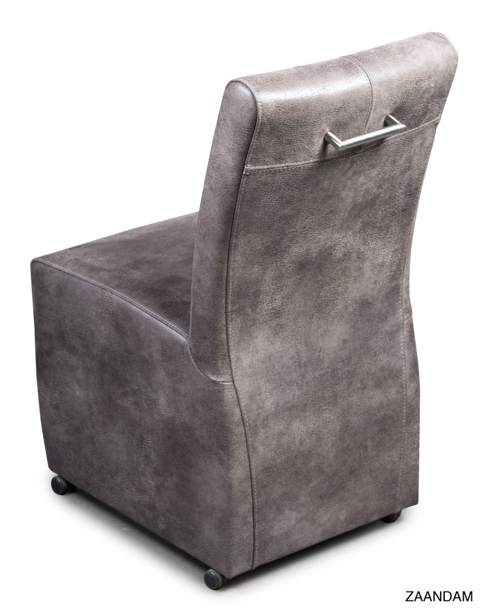 De eetkamerstoel Zaandam is van absolute topkwaliteit. Nederlands vakmanschap van het merk Haveco! Deze stoel is leverbaar in verschillende soorten en kleuren leder en stof. Daarnaast heb je de keuze uit verschillende stiksels, de Zaandam stoel is eigenlijk dezelfde stoel als de stoelen Zwolle en Zutphen. Het verschil is enkel het gebruik van andere stiknaden. De stoel Zaandam is ook verkrijgbaar met kleine houten pootjes in plaats van wielen. Op de achterzijde van de stoel zit een RVS greep, maar kan, op aanvraag, ook zonder deze greep worden geleverd. De eetkamerstoel is ook mogelijk met arm.