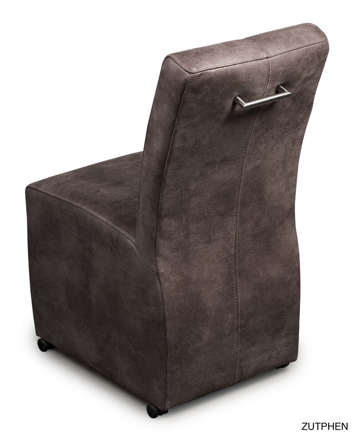 De eetkamerstoel Zutphen is van absolute topkwaliteit. Nederlands vakmanschap van het merk Haveco! Deze stoel is leverbaar in verschillende soorten en kleuren leder en stof. Daarnaast heb je de keuze uit verschillende stiksels, de Zutphen stoel is eigenlijk dezelfde stoel als de stoelen Zwolle en Zaandam. Het verschil is enkel het gebruik van andere stiknaden. De stoel Zutphen is ook verkrijgbaar met kleine houten pootjes in plaats van wielen. Op de achterzijde van de stoel zit een RVS greep, maar kan, op aanvraag, ook zonder deze greep worden geleverd.