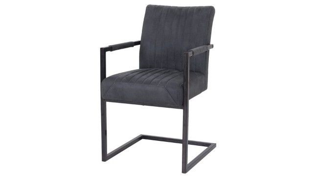 Eetkamerstoel Ferro van het merk Tower Living is bekleed met een microvezel stof in de kleur antraciet. Het materiaal lijkt op geschuurd leder maar is gemaakt van polyester. Leverbaar in donkerbruin, lichtbruin, groen en antraciet.