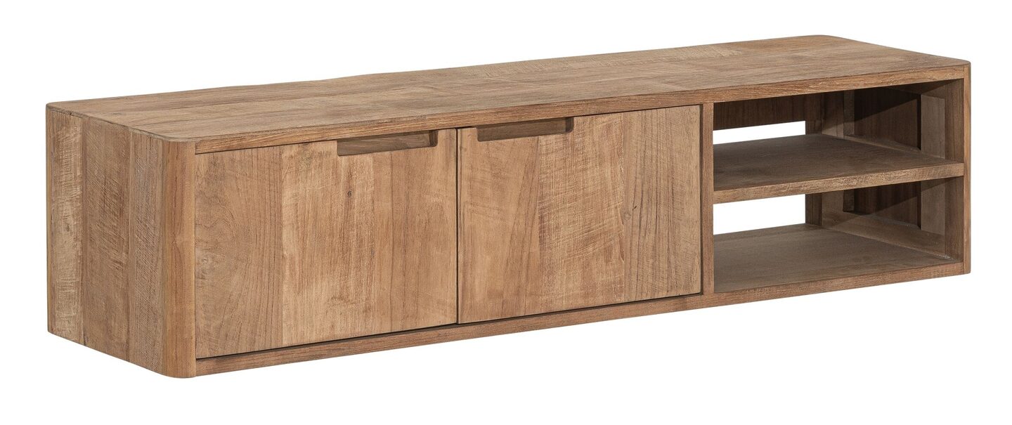 Hanging TV stand Bliss No.2 small, 2 doors, 2 open racks,30x130x35 cm | TEAKWOOD top