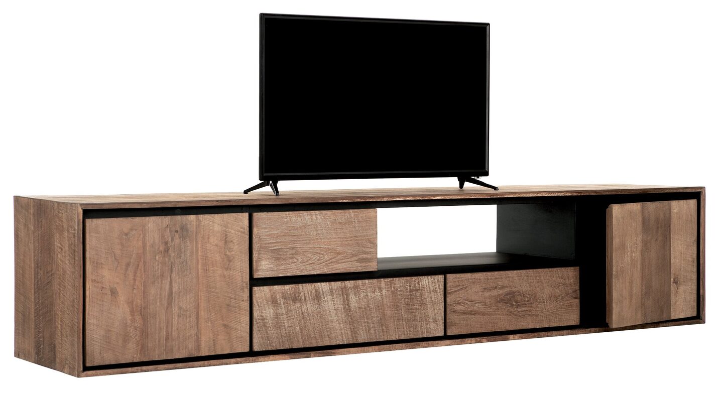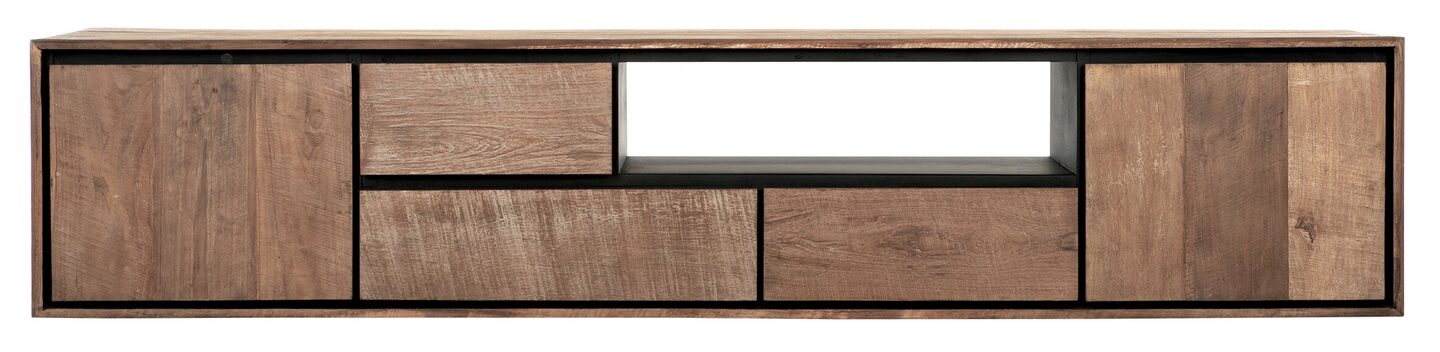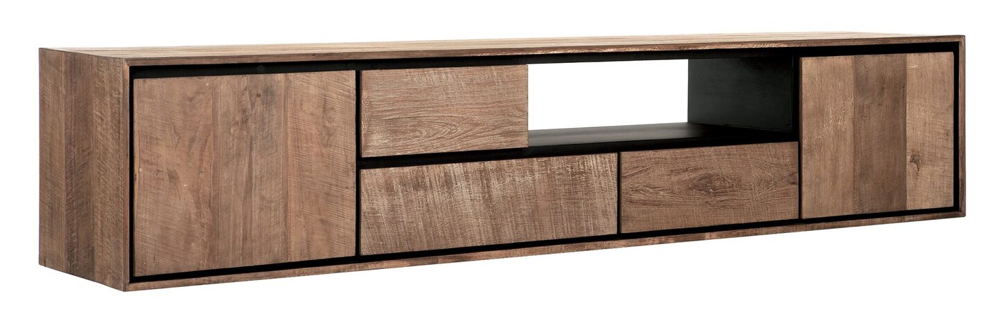 Het metropole tv-meubel van DTP Home biedt voldoende opbergruimte. Dit karaktervolle tv-dressoir heeft 2 kastdeurtjes, drie lades en een ruim open vak. Zo is er voldoende ruimte om de afstandsbediening en andere spullen op te bergen, maar wel uit het zicht. De Metropole is gemaakt van gerecycled teakhout dat met de hand is bewerkt. Hierdoor zijn de scheurtjes, lijnen en onregelmatigheden op de opbergkast nog zichtbaar. Door de combinatie van het robuuste teakhout en de metalen accenten krijgt de kast een stoere uitstraling.