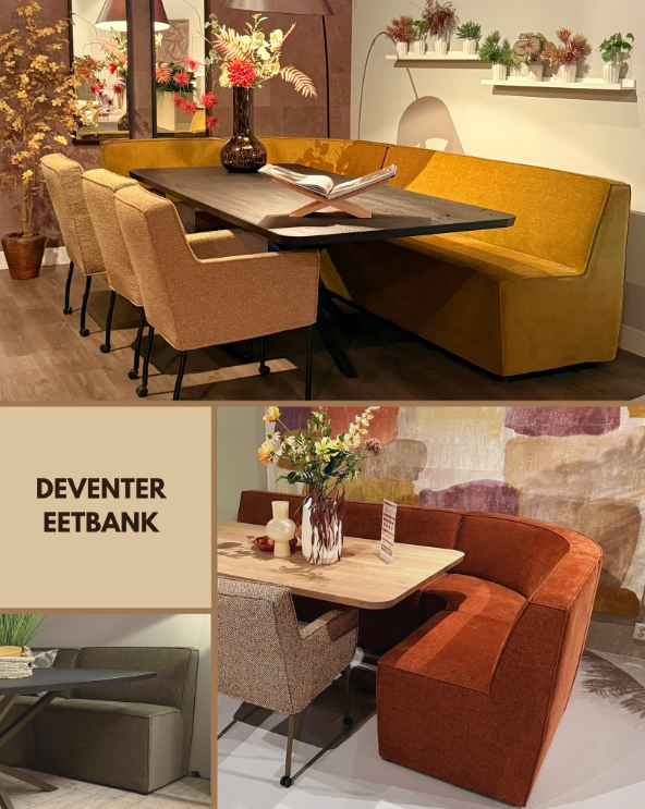 Eetbank Deventer van het merk Haveco is tot aan de grond doorgestoffeerd en volledig samen te stellen als losse bank of (ronde)hoekopstelling. Perfect te combineren met onze Apeldoorn en Zoeterwoude eetkamerstoelen voor een samenhangend en stijlvolle eetkamer. Tijdloos design, optimaal comfort en praktisch in gebruik - een eetbank die zich aanpast aan jouw interieur. Leverbaar in heel veel stof-en leersoorten