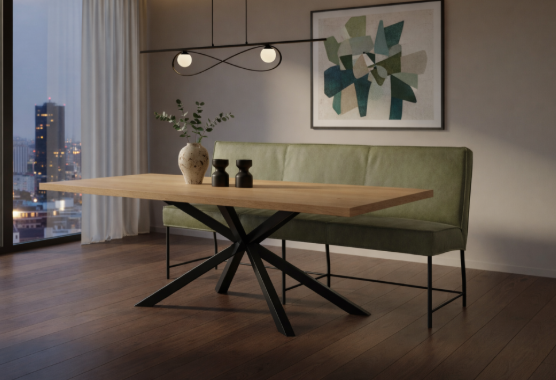 De Zouterwoude eetbank van Haveco is een lekkere nonchalante eetkamerbank die nog eens heerlijk zit ook! De Zoeterwoude eetkamerbank is de eetbank-variant van eetkamerstoel Zoeterwoude. Hierdoor zijn deze samen goed te combineren om een eetkamer te creëren in dezelfde stijl. Ook eetkamerbank Deventer is een variant op dit model, het verschil zit hem in de stoffering tot de grond. De eetkamerbank Zoeterwoude is beschikbaar in maten van 120 cm tot en met 240 cm. Ook is er een hoek element beschikbaar waarmee je eenvoudig een complete eethoekbank samenstelt. Het onderstel is verkrijgbaar in vijf kleuren: zwart, anodic brown, anodic bronze, RAL 1019 en ivoor, waarmee je de bank volledig kunt afstemmen op je interieur.. Voor meer informatie neem contact met ons op of kom langs in de showroom!