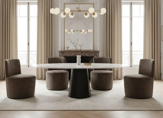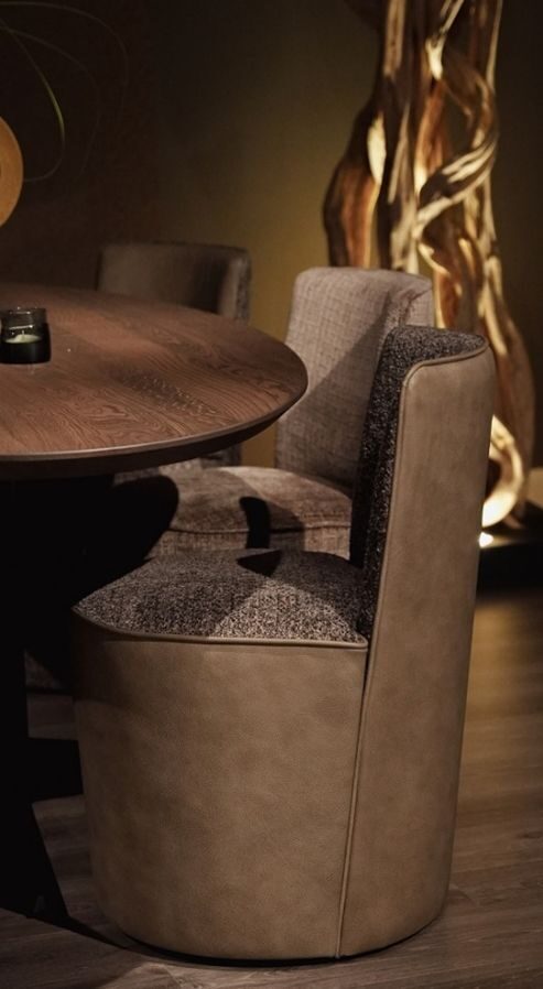 Eetkamerstoel Dubai op wieltjes is nieuw toegevoegd aan onze Haveco Collectie. Deze luxe eetkamerfauteuil is doorgestoffeerd tot aan de grond en voorzien van zwarte parketwieltjes. Dubai is een stoel met een afgeronde rug en zitting, wat zorgt voor een zachte en uitnodigende vormgeving. Dankzij het gebruik van hoogwaardig koudschuim biedt de stoel een hoog zitcomfort. De Dubai is leverbaar met wielen of met een 360° auto-return draaisysteem. Daarnaast kan dit model op drie manieren worden gestoffeerd: volledig in stof of leder, of in twee verschillende combinaties van stof en leder.Ook heb je de optie om te kiezen voor een draaischijf.