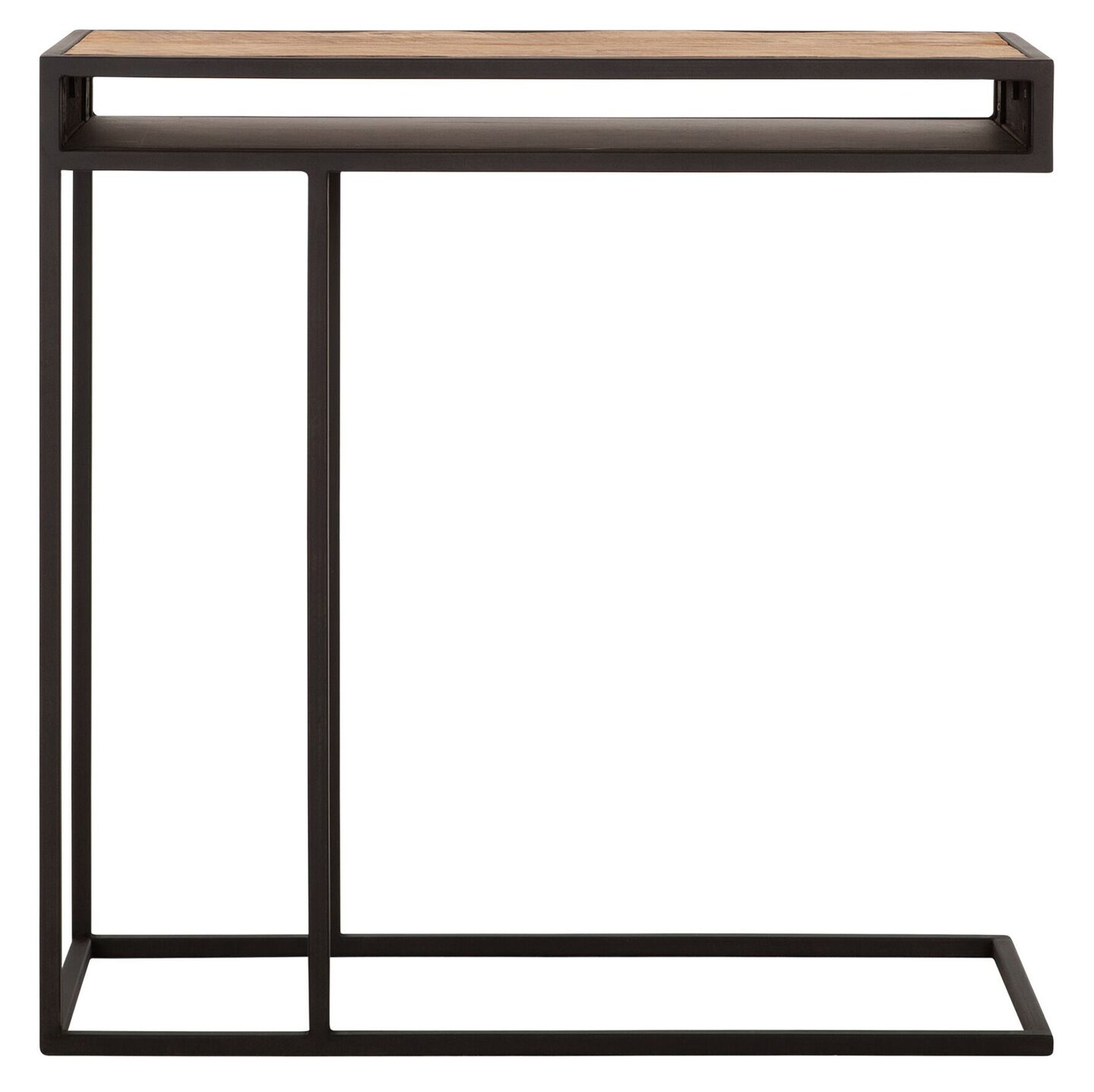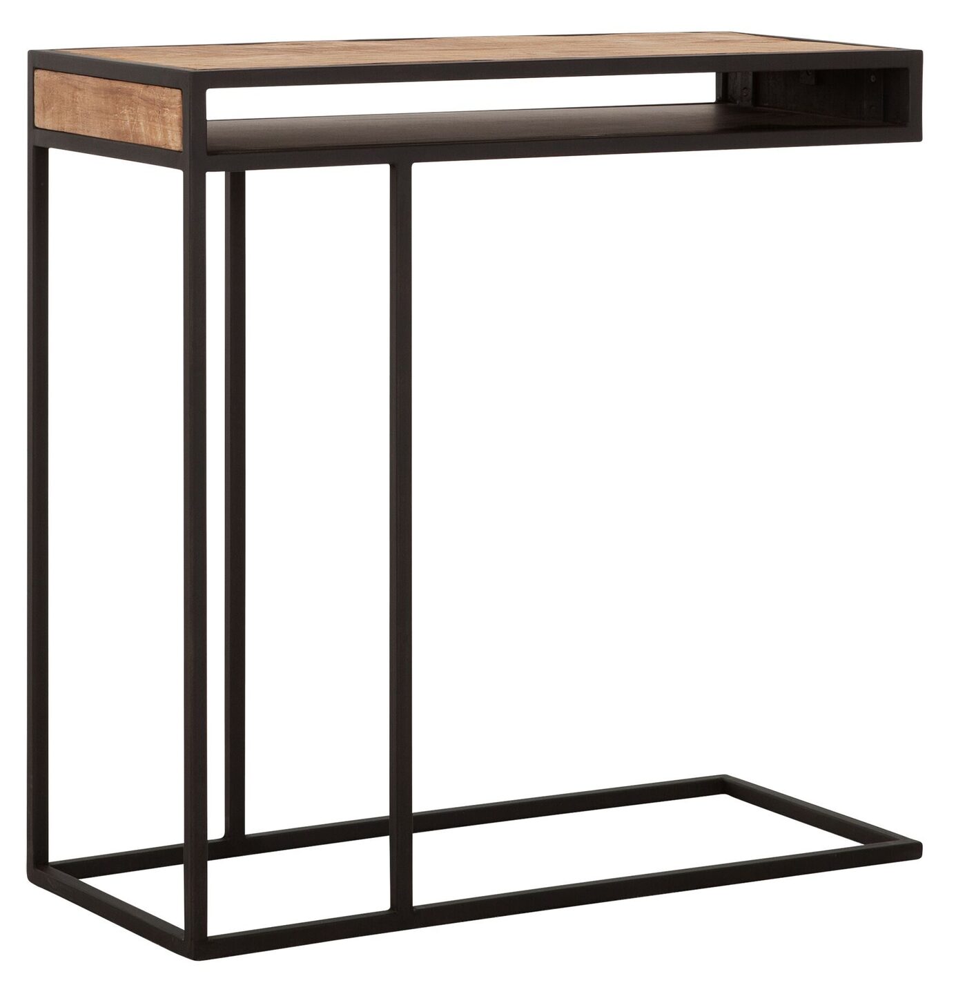 Deze laptoptafel heeft een strak zwart frame en een blad van gerecycled teakhout. De laptoptafel heeft een totale hoogte van 70 cm en het blad is 8 cm dik. Het tafeltje is dus 62 cm hoog, tot de onderkant van het blad. Met deze hoogte kan de laptoptafel met elke bank worden gecombineerd, er blijft daardoor ook nog genoeg ruimte over tussen de zitting van de bank en de tafel. Het blad is 70 x 30 cm, een heerlijk formaat om je laptop op te plaatsen. De binnenkant is afgewerkt met een zwarte beits en finish.