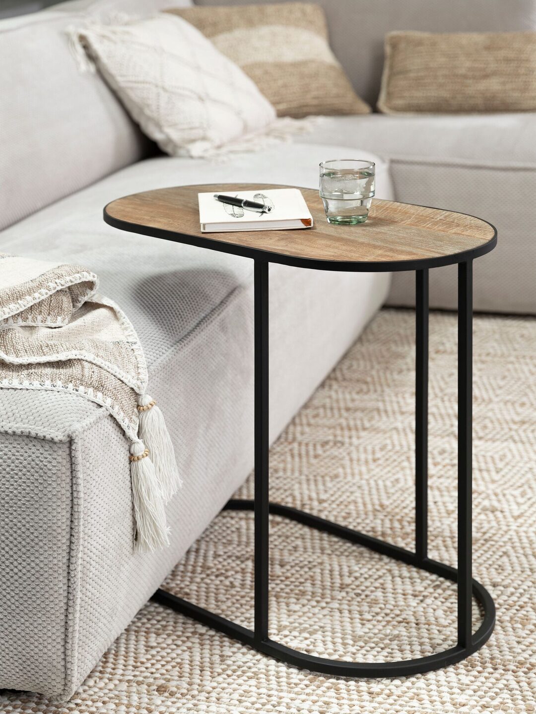 Laptop tafel Terra naturel is gemaakt van gerecycled teakhout, een duurzaam houtsoort, wat elke laptop tafel uniek maakt. De laptop tafel heeft een ovale vorm. De afmetingen zijn 60x65x35 cm.