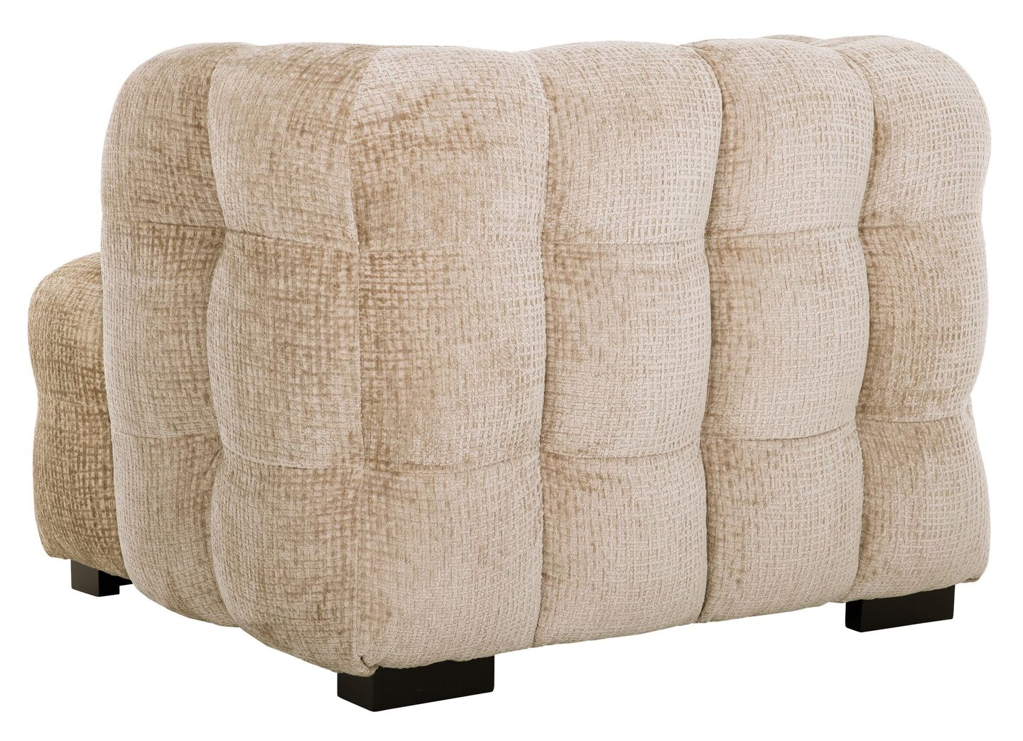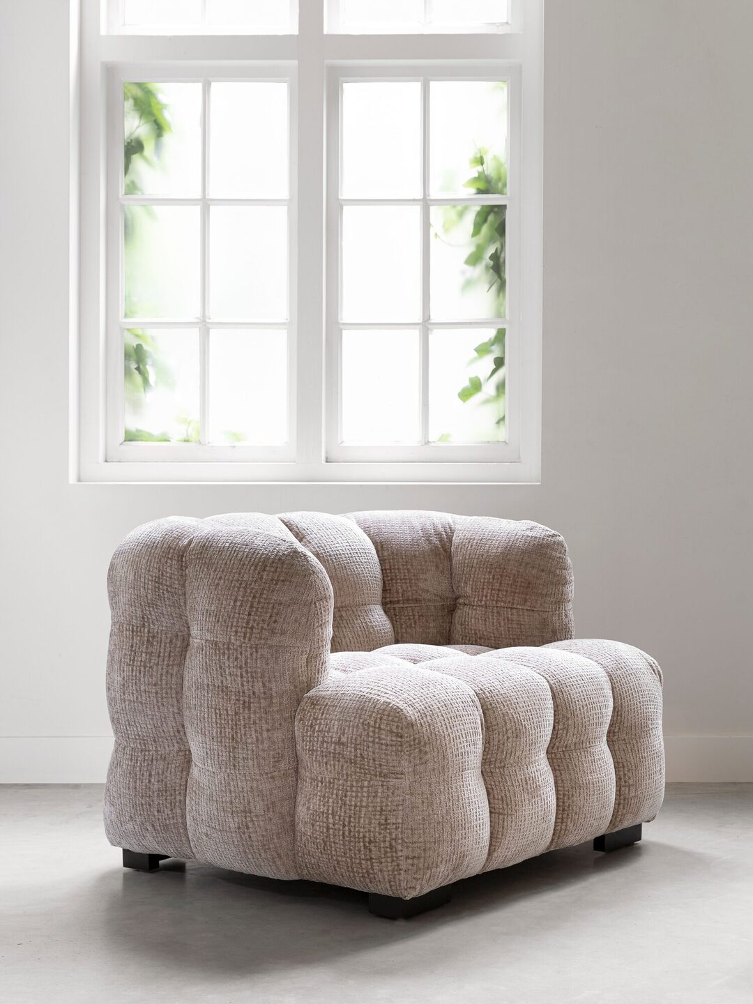 Stel je voor: na een lange dag plof je neer in de fauteuil Mars. Het is precies die plek in huis waar je even helemaal tot rust komt. Dankzij het royale formaat en de zachte, uitnodigende vormen nestel je jezelf moeiteloos in de hoeken van deze fauteuil. De verfijnde, veloursachtige bekleding in de kleur glamour sand voelt heerlijk zacht aan en geeft je interieur direct een warme, sfeervolle uitstraling. Het is een meubelstuk dat niet alleen uitnodigt tot ontspanning, maar ook een karaktervol statement maakt in je woonkamer.