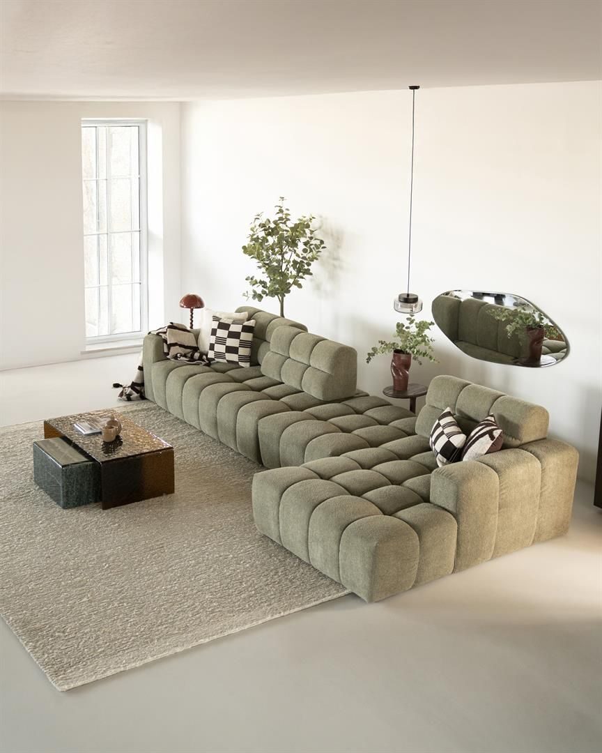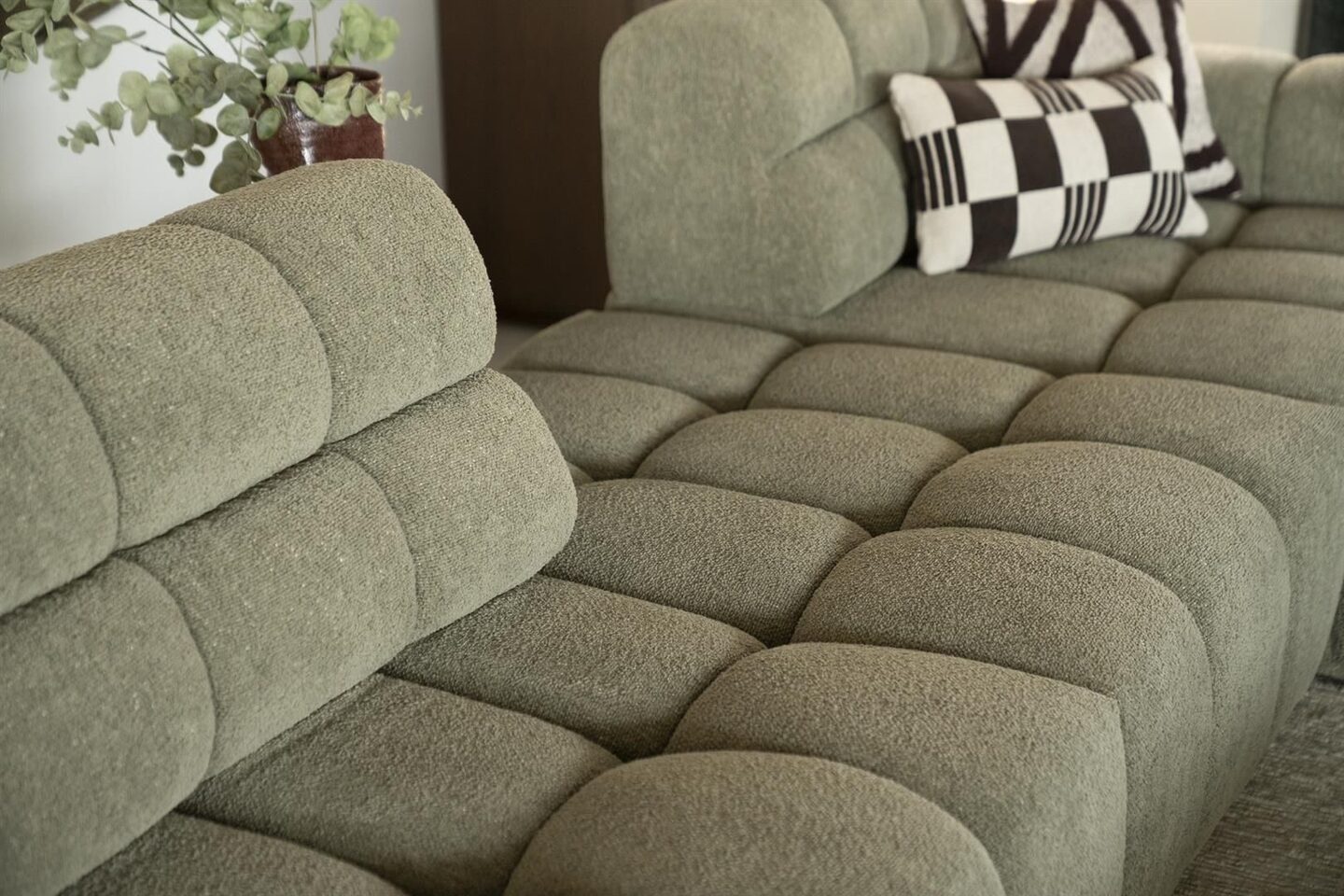 Bank Matthieu is verkrijgbaar in diverse zit- en lounge elementen, die aan alle zijden gestoffeerd zijn. Zo pas je de opstelling eenvoudig aan van hoekbank tot rechte bank. Stel Matthieu volledig naar wens samen uit talloze stof- en microleersoorten.