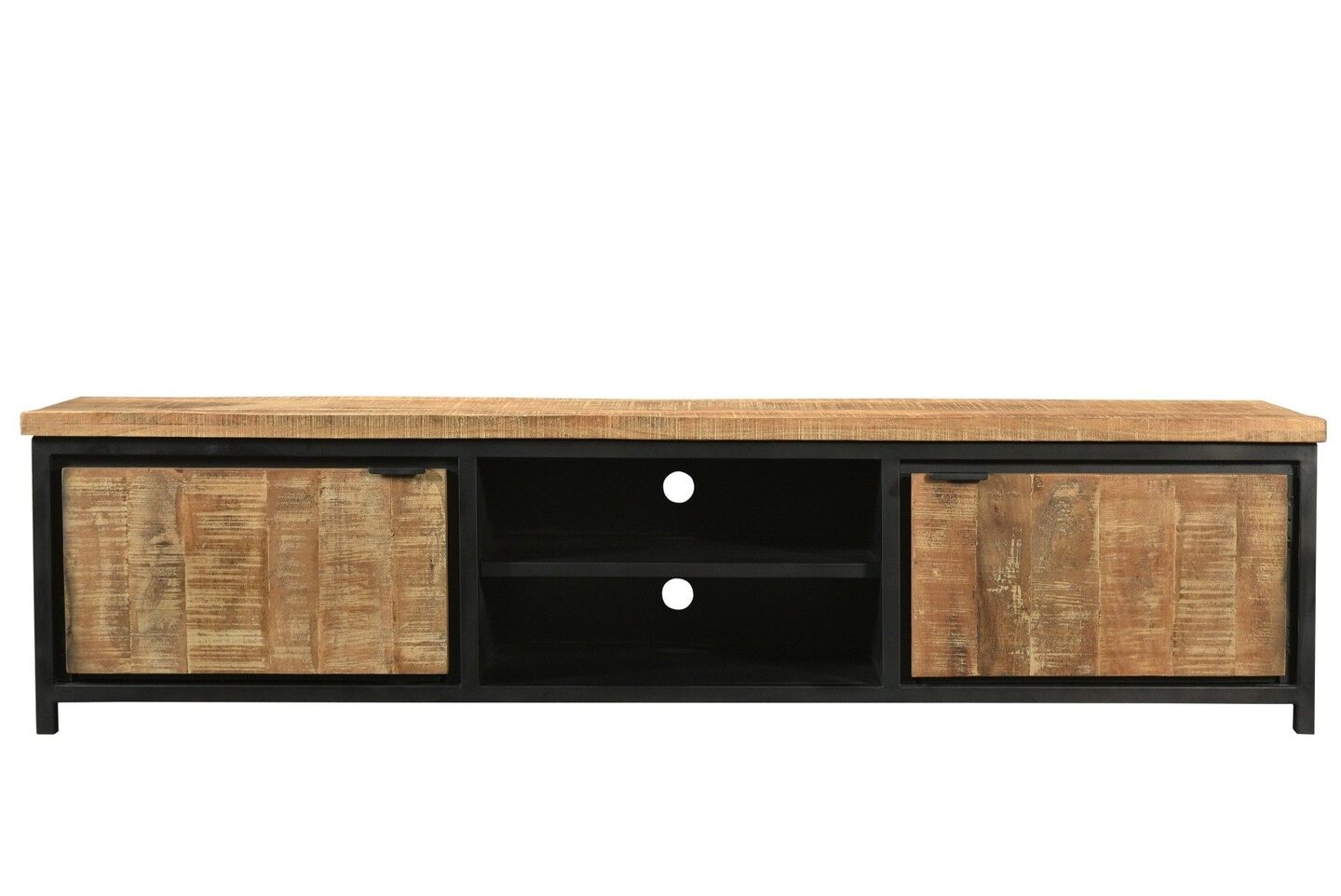 Leuke, flinke tv dressoir met een mango bovenblad en deuren. Het frame is van vintage metaal gemaakt.. Door de vintage kleur past deze kast al snel in je interieur. Omdat iedere kast weer net anders is dan de kast in de winkel, kan deze tv kast vanuit de showroom ook zeer snel geleverd worden. Hier is het: what you see is what you get !!