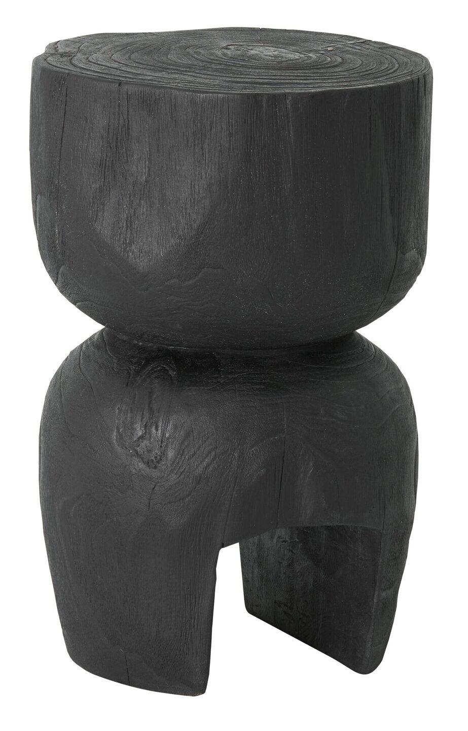 De opening aan de onderkant zorgt ervoor dat deze bijzettafel twee poten heeft. De natuurlijke eigenschappenkomen door de ronde vormen nog beter tot zijn recht. De krukjes uit de Amber Collectie zijn gemaakt van gerecycled teakhout.